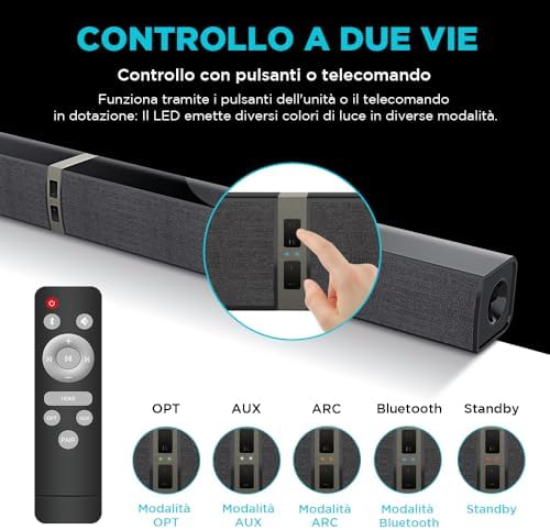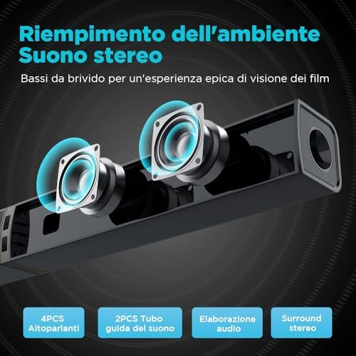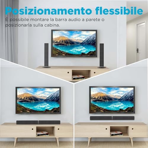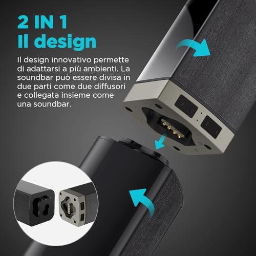 Scopri il nuovo Soundbar 2.0 Canal per televisori, un sistema audio innovativo progettato per migliorare la tua esperienza di visione. Con una lunghezza di 32 pollici, questo soundbar 2 in 1 è divisibile, permettendoti di adattarlo facilmente al tuo spazio. Grazie alle sue 3 modalità EQ, potrai personalizzare il suono in base ai tuoi gusti, mentre il suono surround 3D ti immergerà completamente nei tuoi film e nella tua musica.