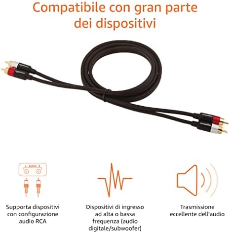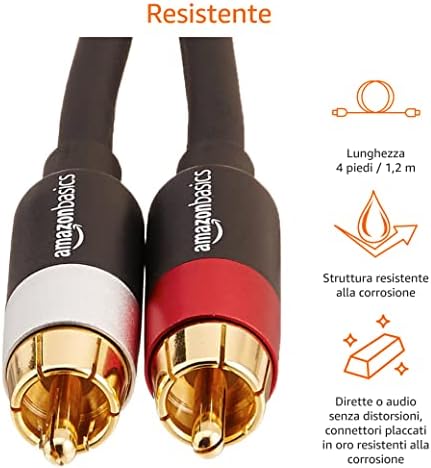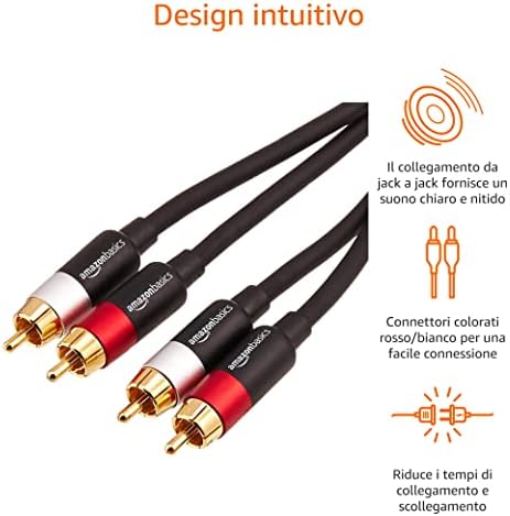 Ottimizza la tua esperienza audio con il cavo audio RCA di Amazon Basics. Progettato per garantire una connessione di alta qualità tra i tuoi dispositivi audio, questo cavo è ideale per amplificatori, diffusori attivi e subwoofer. I connettori placcati oro offrono una trasmissione del segnale senza interferenze, assicurando un suono cristallino e privo di distorsioni. Con una lunghezza di 1.22 metri, questo cavo è perfetto per configurazioni audio domestiche o professionali. Scegli la qualità e l’affidabilità di Amazon Basics per il tuo sistema audio e goditi un suono straordinario.