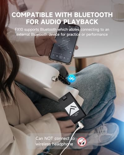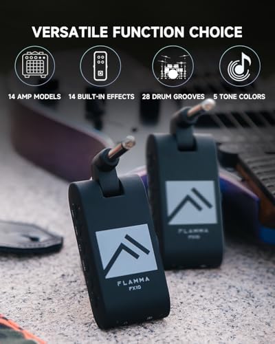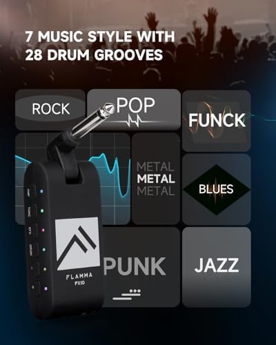 FLAMMA Amplificatore per cuffie per chitarra portatile con 28 scanalature per batteria, 14 effetti integrati, 14 modelli di amplificatori, 5 colori di tono, supporto Bluetooth USB Registrazione audio