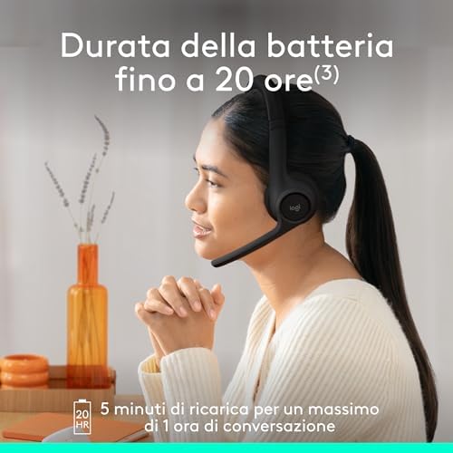 Logitech Zone 300, Cuffia con microfono wireless Bluetooth, cancellazione del rumore, compatibile con Windows, Mac, Chrome, Linux, iOS, iPadOS, Android – Nero