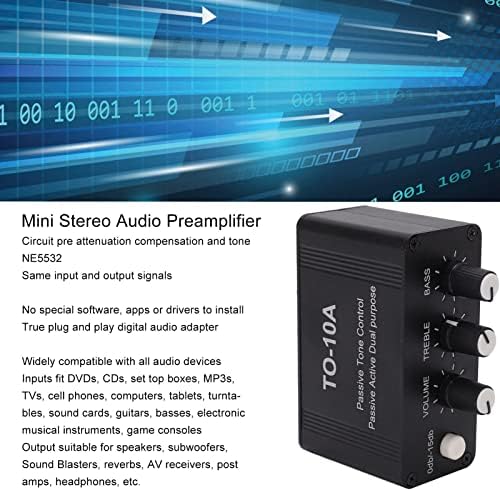 Scopri il Mini preamplificatore audio stereo, un piccolo amplificatore per cuffie progettato per offrirti un’esperienza audio superiore. Grazie al chip NE5532, questo preamplificatore garantisce una qualità del suono cristallina e una potenza eccezionale. Con controlli dedicati per Treble e Bass, puoi personalizzare il tuo ascolto per adattarlo ai tuoi gusti musicali. Il controllo del volume ti permette di regolare facilmente l’intensità del suono, mentre le uscite RCA e l’ingresso da 3,5 mm assicurano una compatibilità versatile con vari dispositivi audio. Perfetto per appassionati di musica e audiofili, questo mini preamplificatore è la soluzione ideale per migliorare la tua esperienza di ascolto. Non perdere l’opportunità di elevare la tua qualità audio con questo pratico e potente amplificatore!